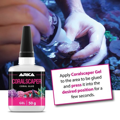 Coralscaper Gel ponúka maximálnu lepiacu silu a neobsahuje žiadne škodlivé látky. Tiež rýchlo tvrdne pod vodou a je neškodný pre vaše koraly.