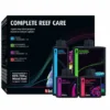 Nová kompletná starostlivosť o útesy je osvedčený 4-dielny program, ktorý zabezpečuje optimálny rast a vyfarbenie koralov doplnením vody o všetkých 36 hlavných, vedľajších a stopových prvkov, ktoré útesy pravidelne spotrebúvajú (vrátane zložiek alkality). Complete Reef Care vám poskytne 4 fľaše a 1 test vápnika týždenne, nič viac nie je potrebné.