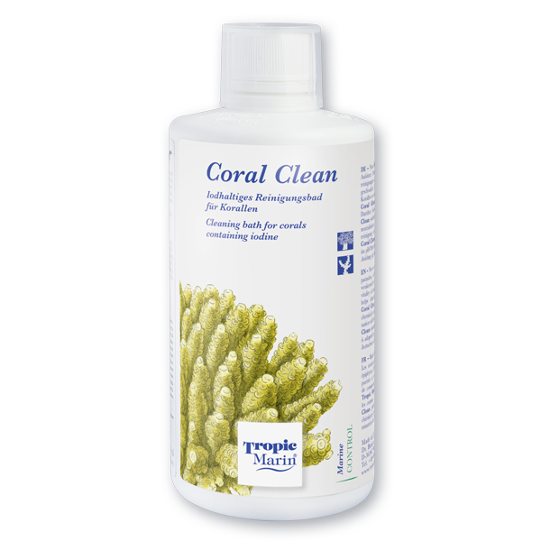 - Tropic Marin® Coral Clean neobsahuje fosfáty a je menej agresívny ako iné formy čistiacich kúpeľov, ako je Lugolov roztok alebo sladká voda.